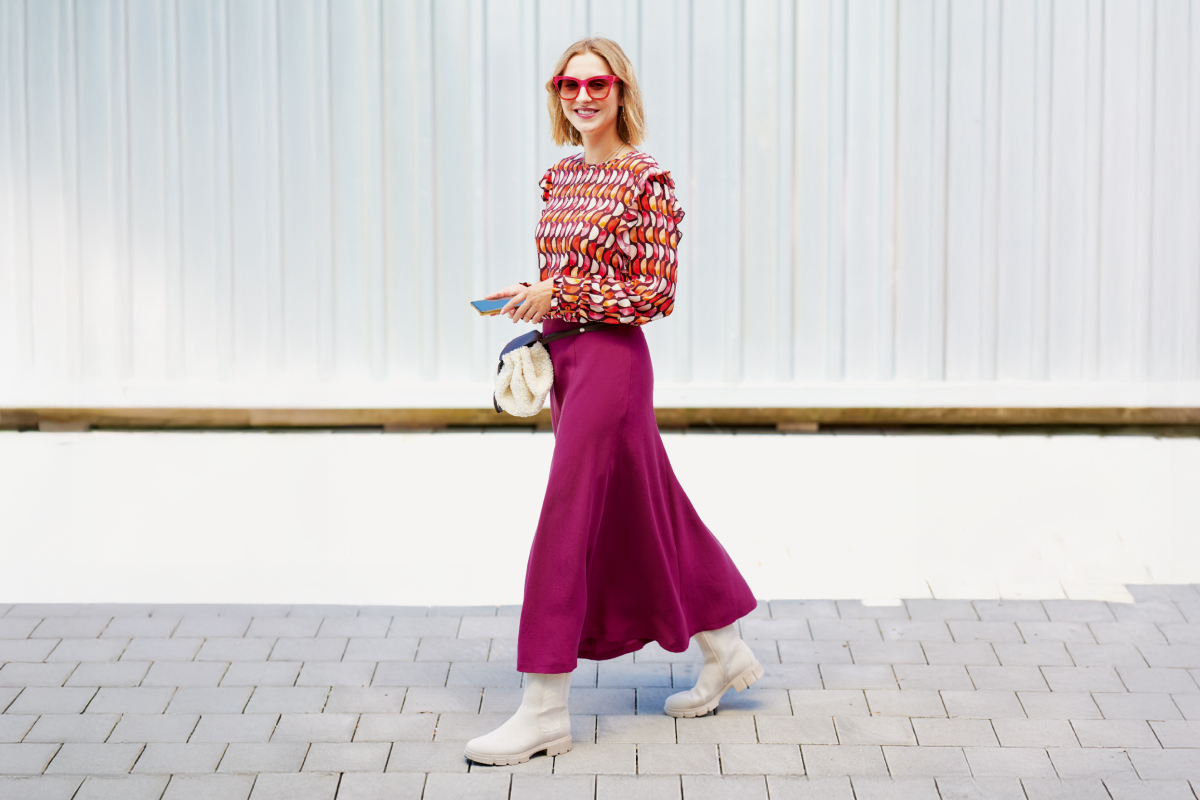 Юбка с шестью клиньями снова в моде и прекрасно подчёркивает силуэт. Мягко ниспадающая широкая кромка и зимняя длина обеспечивают уютное пространство для ног.